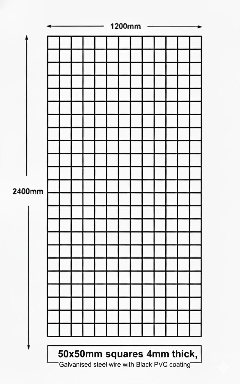 Weld Mesh Sheet 2.4m x 1.2m ( 50x50mm, 4mm Thick) Black PVC