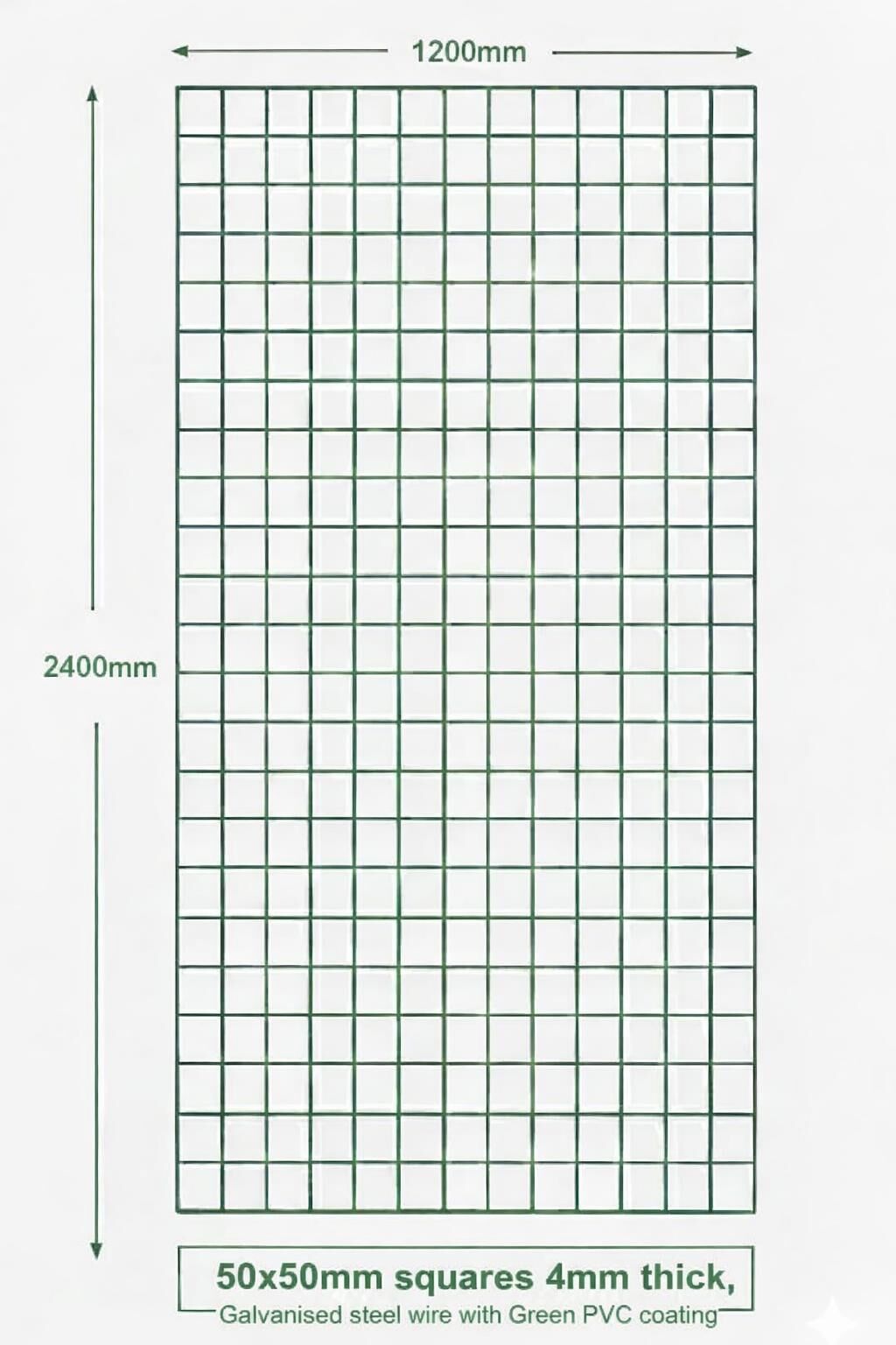 Weld Mesh Sheet 2.4m x 1.2m ( 50x50mm, 4mm Thick) GREEN PVC